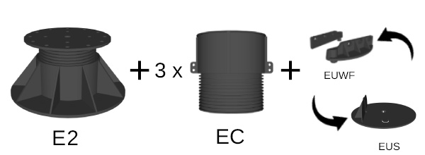 E2 ayak üzerine ilave edilen 3 adet yükseltme aparatı EC 'den oluşur
