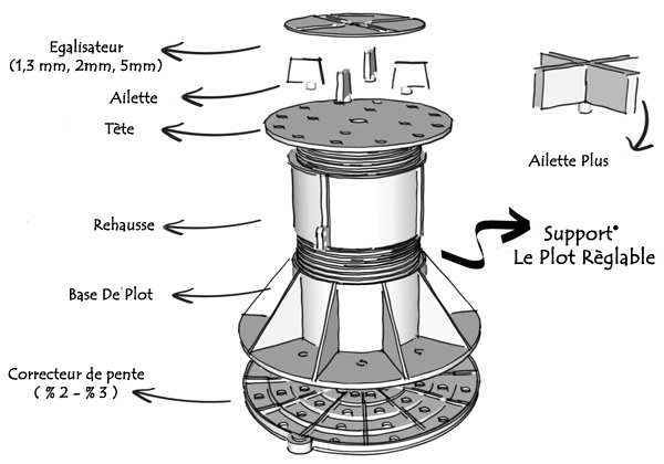 Les plots réglables SUPPORT Pedestal offrent d'excellentes solutions pour faire de toutes vos terrasses un espace habitable grâce à ses produits que vous pouvez utiliser sous la pierre et le bois et régler la hauteur de 15 mm à 1200 mm.