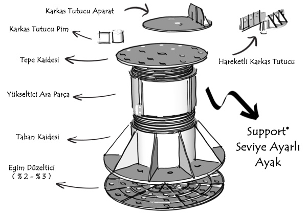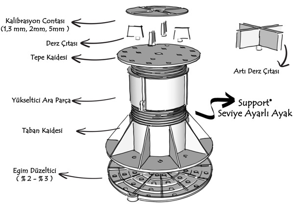 SUPPORT Pedestal yükseltilmiş döşeme sistemleri, taş ve ahşap altında kullanabileceğiniz, 15 mm den 1200 mm’ye kadar milimetrik olarak yükseklik ayarı yapabileceğiniz ürünleri ile tüm teraslarınızı yaşanabilir alan haline getirmek için mükemmel çözümler sunar.